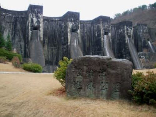 腹ごなしに「豊稔池堰堤」(日本最古の石積式マルチプルアーチダム)毎年、ニュースでゆる抜き見てるけど今年はリアルに見たいから下見に来た。この時期「豊稔池」は水抜いてるんだね~。それから雲辺寺へ行こうかと思ったけどロープウエイの早さをみて満足…