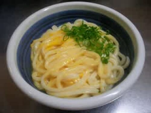 釜玉うどんです。玉子が固まらないんです、なぜ?って聞かれたことあります。事前に玉子は常温に戻しておいてくださいね。これがポイントです。それとこの時期は特に丼も温めておくとよいでしょう