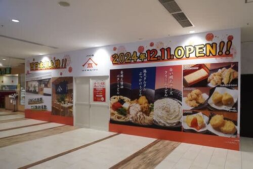 そろそろかなと思い偵察へ。新たに12月11日オープンと記載されていました。近づいてみるとポスターが掲げられ、12/11(水)・12(木)オープン記念キャンペーンとして、店内飲食限定「釜明太醤油バターうどん」「鶏天ぶっかけうどん」「鶏天うどん」通常価格…