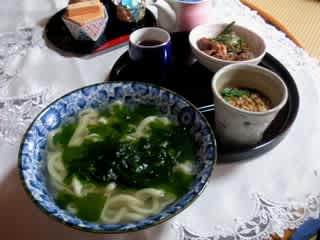 釜あげうどんの上にわかめが乗って磯の香りがなんともいい感じ