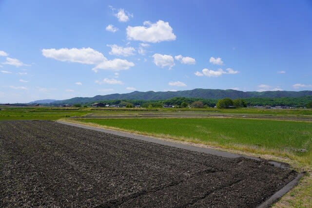鬼ノ城がばっちり見えますそろそろ田植えの季節ですね。