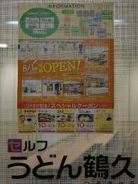 2014-07-28 新店偵察! ◇うどん情報♪ 岡山大学病院の新店うどん店を偵察◇「セルフ うどん鶴久(つるきゅう)」セルフ◇ 8/1オープン予定 住所:岡山市北区鹿田2-5-1 岡山大学病院内 中診フードコート 営業:10:00~18:00 定休:土・日・祝日「セルフ うどん鶴久」の過去ブログ 「新店情報♪」「上島珈琲店」中四国初出店らしい!既存店スタバと選択肢が増えるけど現実はローソンだな